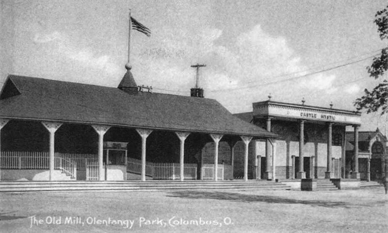 The Midway at Olentangy Park (c. 1904-1906) showing Ye Olde Mill, Mystic Castle, and Laughing Gallery. Source: "Columbus, Ohio 1898-1950 in Vintage Postcards" by Richard E. Barrett https://www.google.com/books/edition/Columbus_Ohio/dl9ANHu511sC?hl=en&gbpv=0
